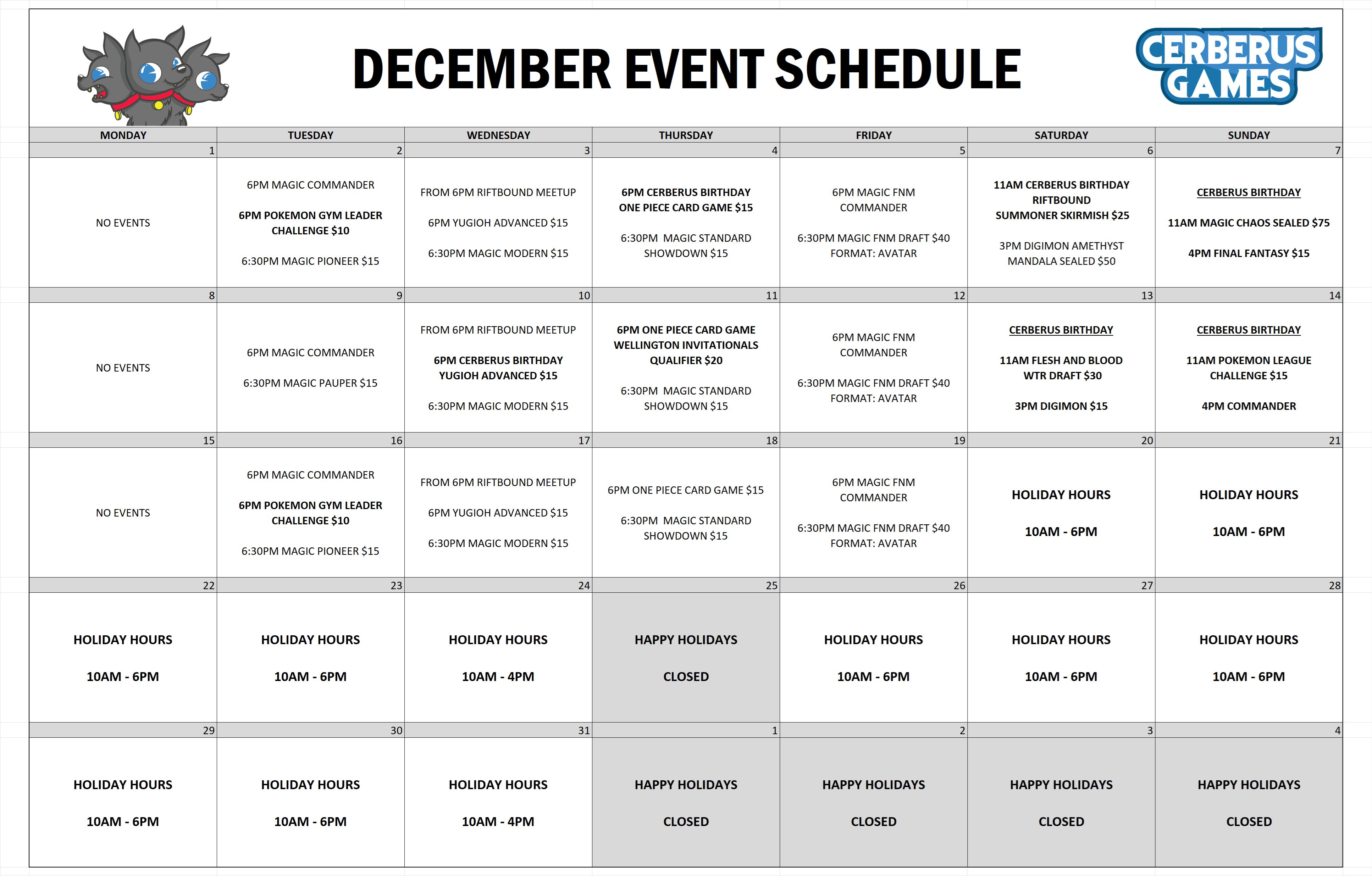 We are run regular events for various trading card games. For more information about our special events, click HERE