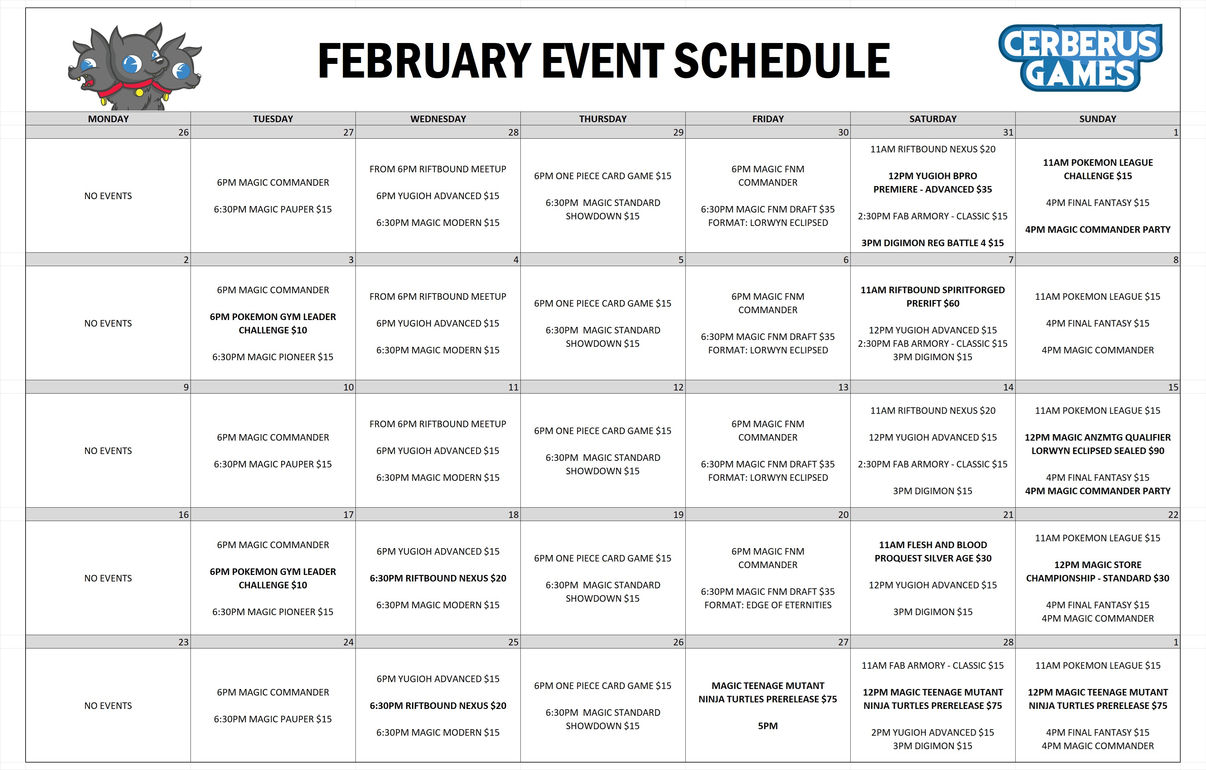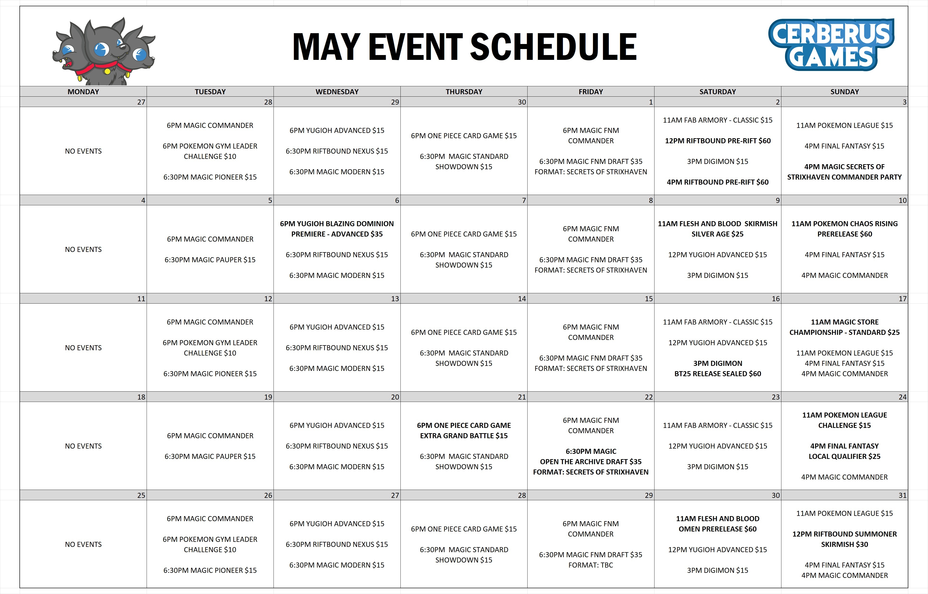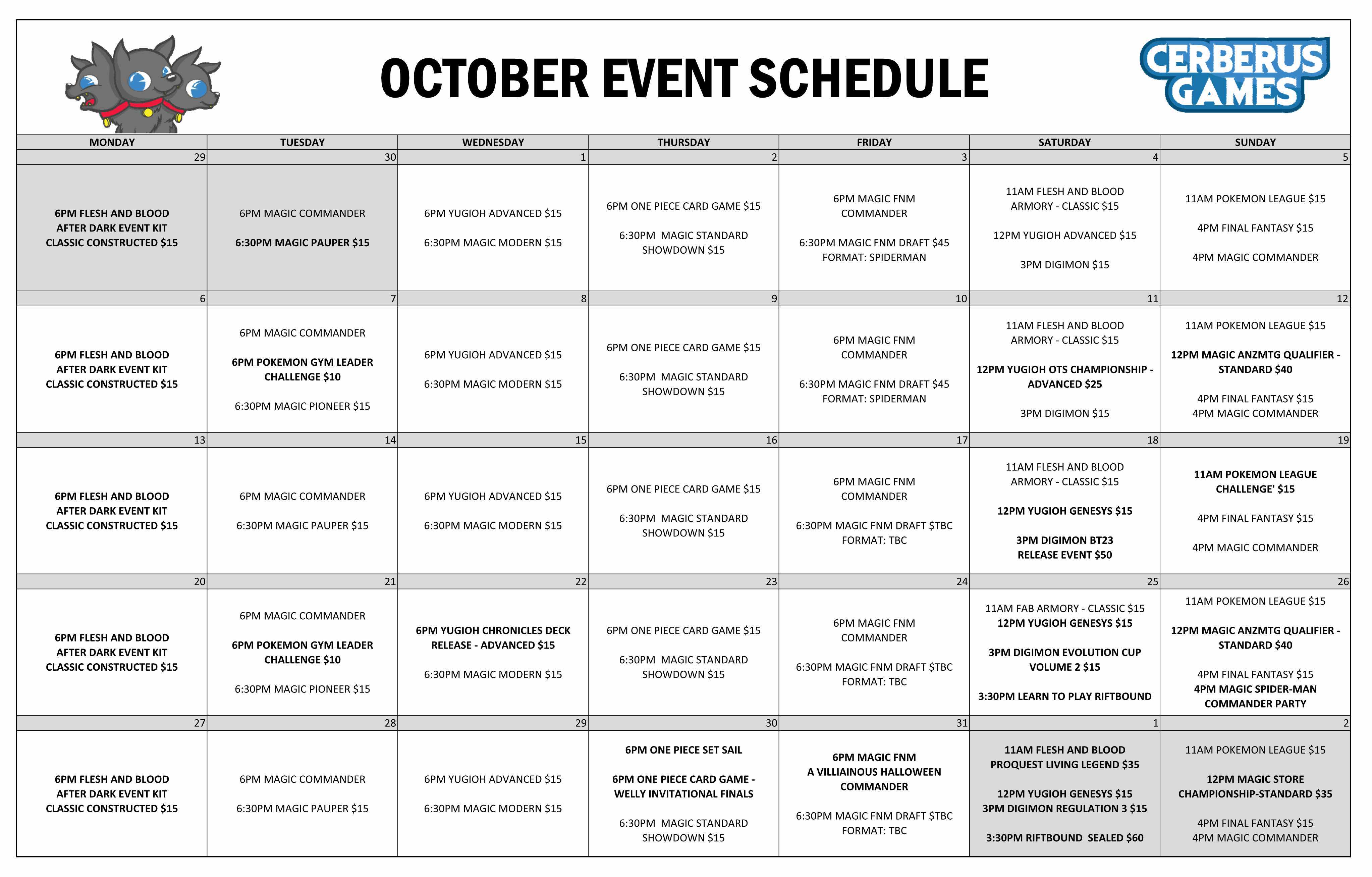 We are run regular events for various trading card games. For more information about our special events, click HERE