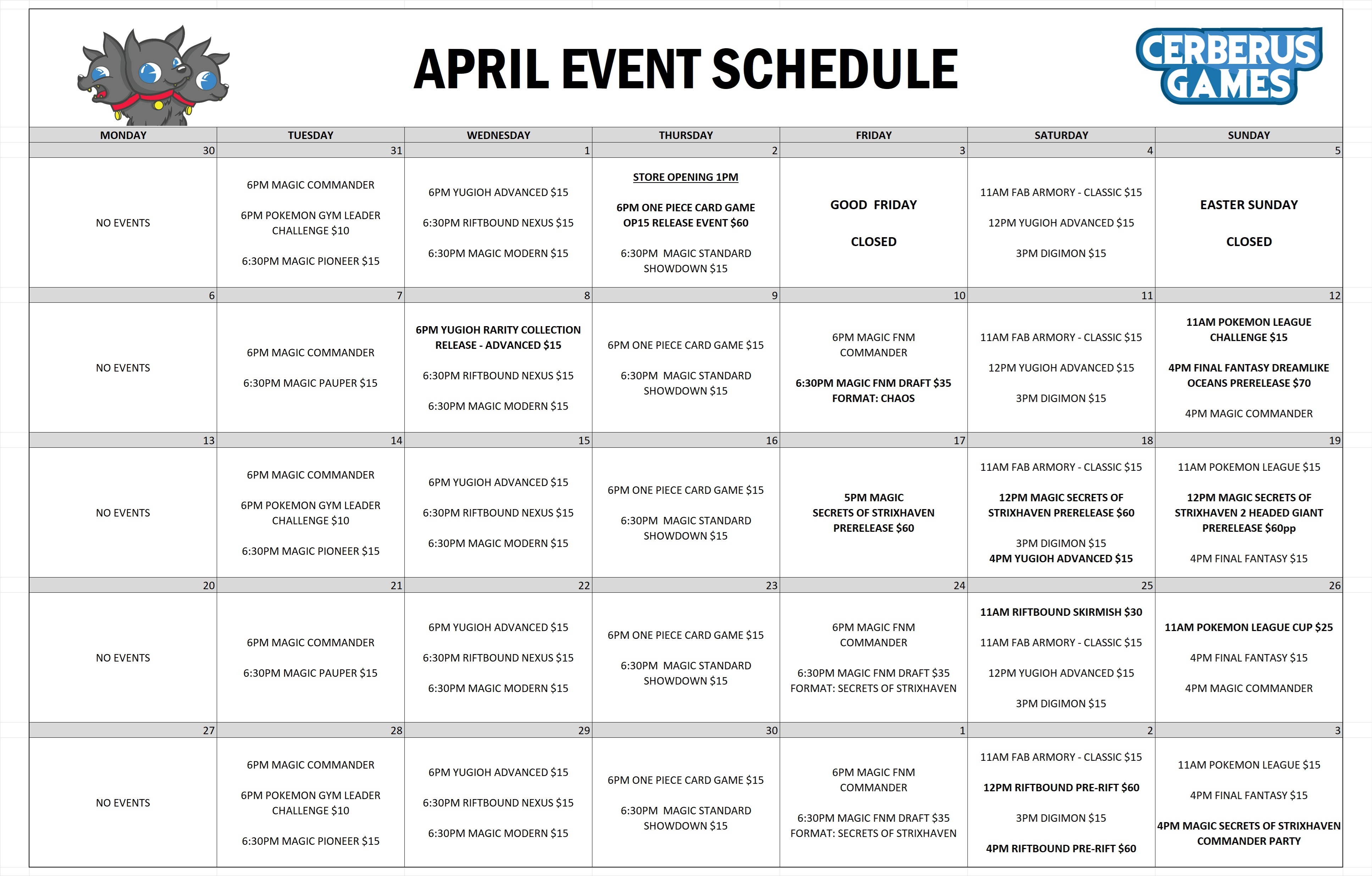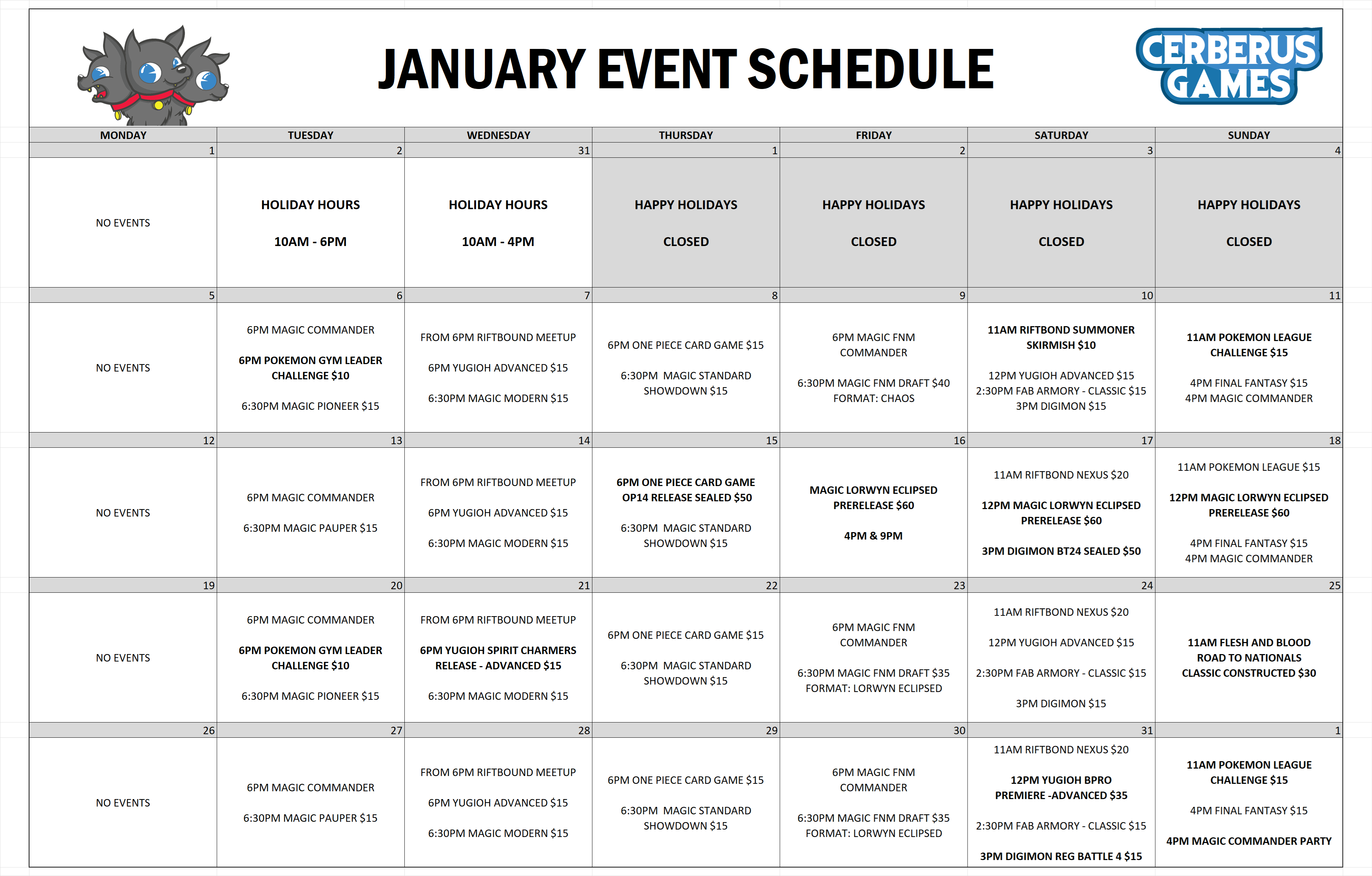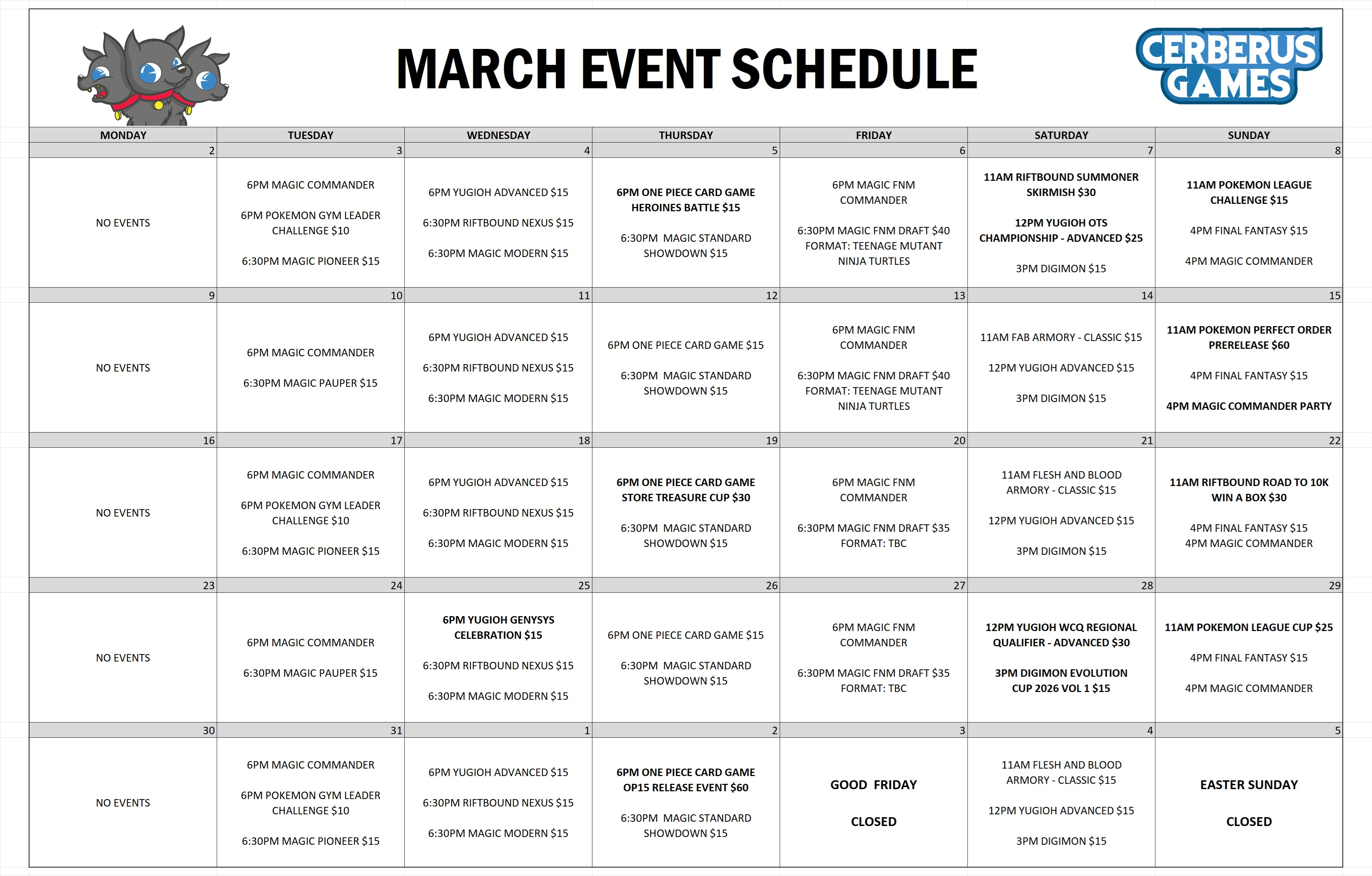 We are run regular events for various trading card games. For more information about our special events, click HERE